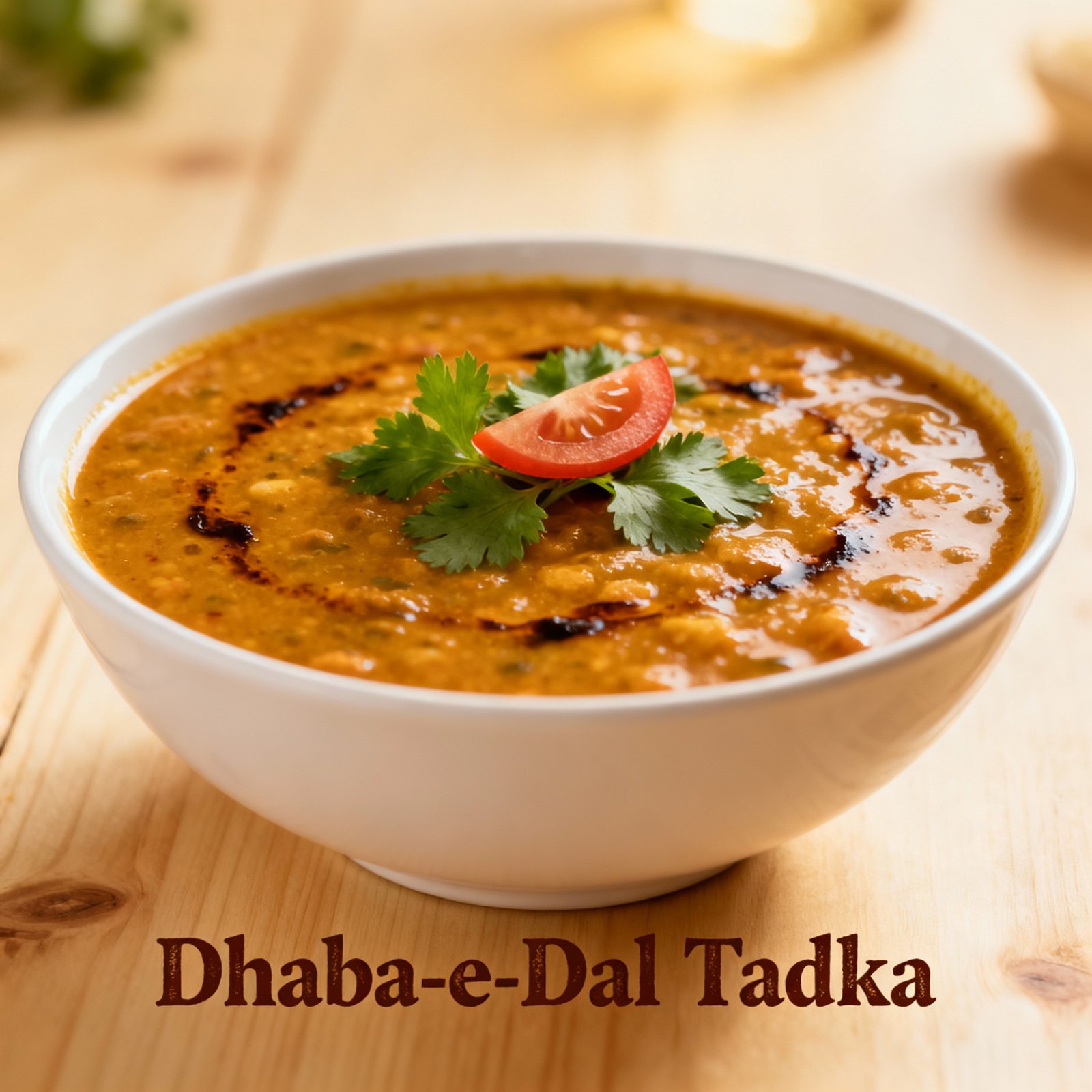 Dhaba‑e‑Dal Tadka – a hearty, smoky dhaba‑style lentil curry finished with a sizzling ghee tadka of garlic, chillies, and spices.